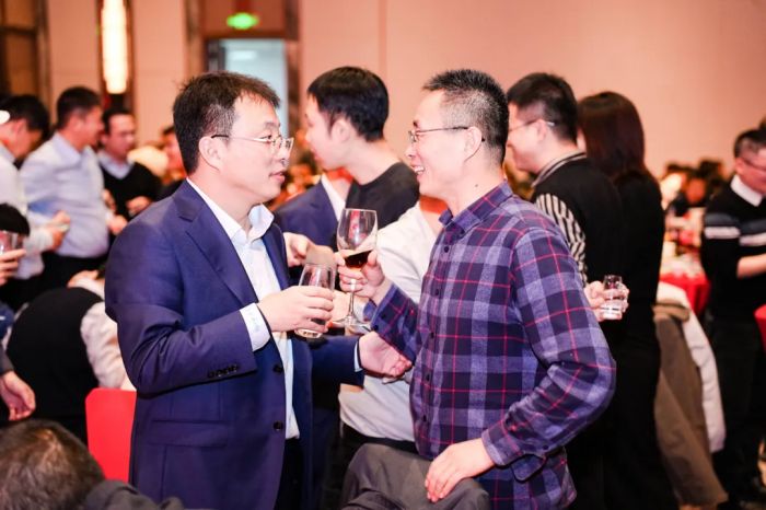 晚宴时分,珍馐美馔间,员工与嘉宾围坐畅聊,分享喜悦与收获,欢声笑语不断,情谊在推杯换盏中升温。